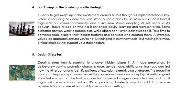 Other community members who have flown with ideas this week are Miha Cirman who has started the conversation of how different tools represent teachers at both primary and secondary level - continuing the conversation on if certain chatbots associate teaching with specific genders when asked to create an image of them. Tom Millinchip has also written an excellent piece on bias here on substack. It meshes well with my bias is like a cake video: