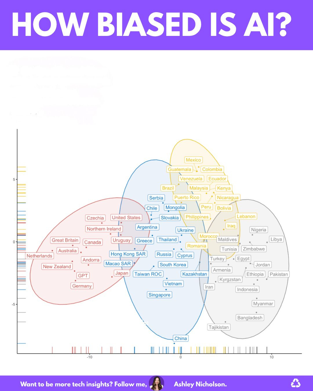 Ashley Nicholson posted a great graphic and discussion about WEIRD bias, based on Mihalcea et al.’s 2024 paper ‘Why AI Is WEIRD and Should Not Be This Way: Towards AI For Everyone, With Everyone, By Everyone‘. We’ve known this for a while, but I really like the graphic and how it demonstrates the formation of distinct groups that need to be overcome, and hence the focus of UNESCO and Fengchun Miao‘s mission to create global equality with AI. Here it is: